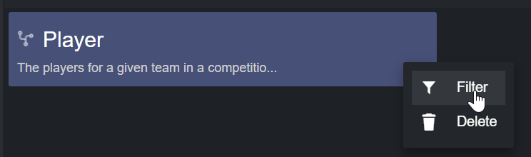 Values read from a file into a dataset can be filtered with the Filtering tool. To do so, select the dataset card, click on the hamburger menu and then press the Filter button.