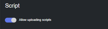 Another option to add a new script is to enable the Allow uploading scripts toggle in the General/Communication section of the Admin page.