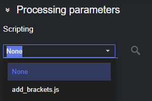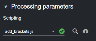 Scripts can be applied to a dataset via the Processing parameters panel: