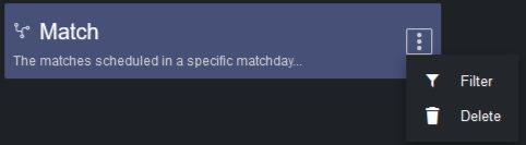 Values read from a file into a dataset can be filtered via the Filtering tool. To do so, select the dataset card, click on the hamburger menu and press the Filter button.