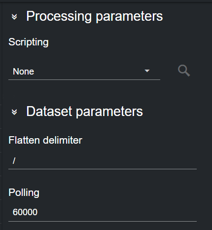 To change the polling rate (how often the TriCaster Vectar host machine is polled for data, in s) for the dataset, click on the dataset card in the Dataset configuration panel and edit the Polling field in the Dataset parameters.