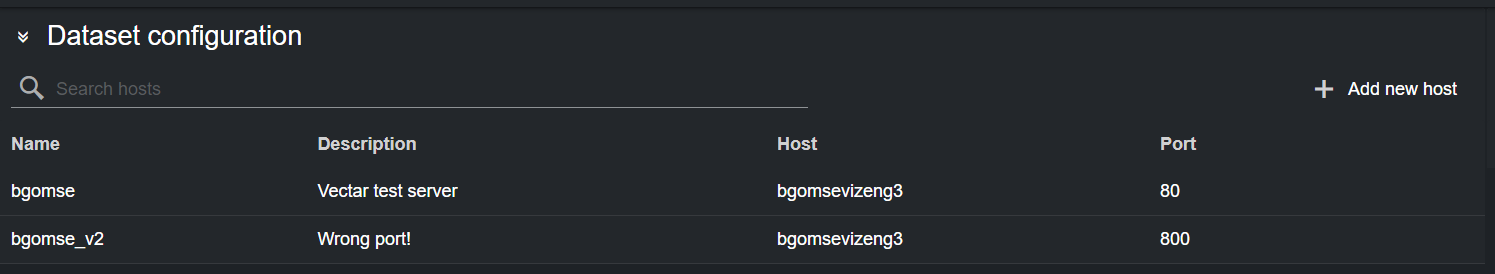 You can now select a host from the table in the Dataset configuration panel by double clicking a row. The table lists all the recently used hosts.