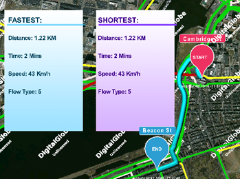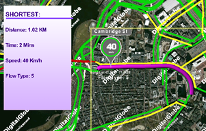By selecting a segment, it updates the Shortest panel showing the distance, the time, the speed and the flow type.