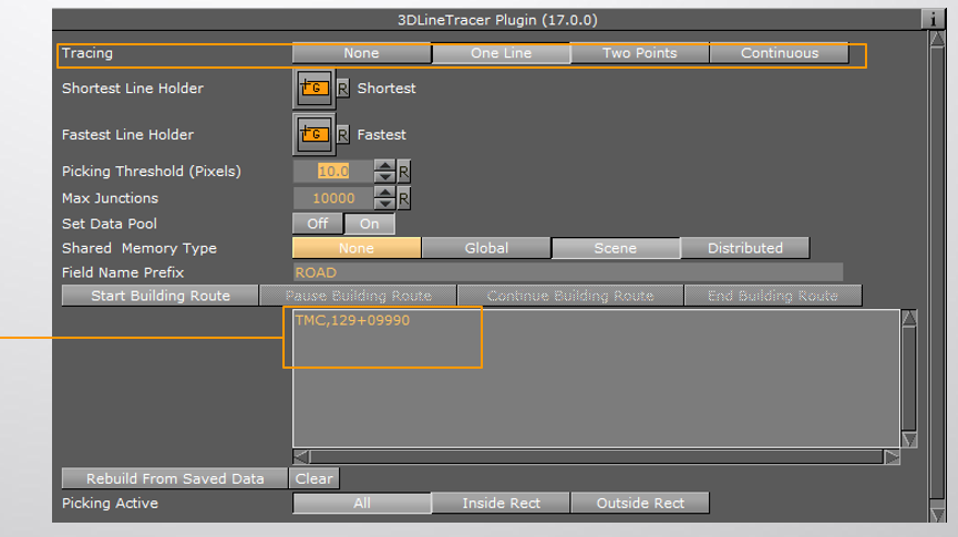Picking Active: Specifies the place on the screen where can routes can be selected. There are three options: