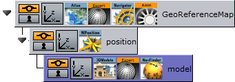 Fly To: Used to take the camera to the model, if it is georeferenced (if the original Collada file had *.kml or *.kmz files containing the geolocation). Requires the presence of NavFinder on the container in order to work.