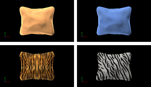 The structure is defined by a normal map. A highlight is placed along the edges of the object to increase the impression of fabric surfaces.