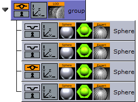 Open the Sphere editor for the all sub containers and set different Tesselation values for each to change the number of triangles and therefore the level of detail of an object.