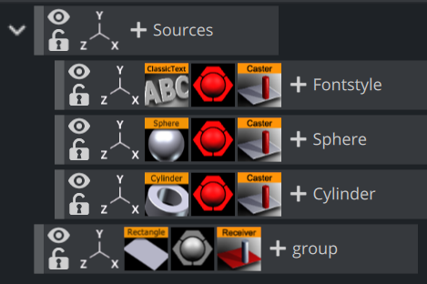 Sources.Add a Fontstyle and the Sphere and Cylinder Geometries as Sub-Containers of Sources.