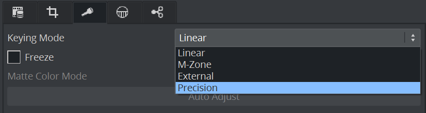 Since the talent tracking functionality relies on the color difference Keyer to be enabled on a provided live input, make sure that the Precision Keyer is enabled on the live input media asset.