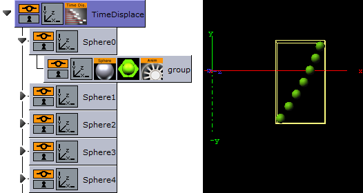 -200.0to200.0.Make six copies of the Sphere container under the TimeDisplace container.