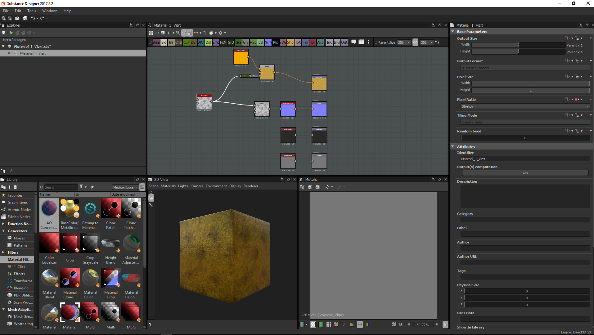 This section gives you a brief introduction on how to create a PBR Metallic/Roughness material in Substance Designer. Substance Designer allows you to create procedural materials as well as texture/scan based materials. Please see the Allegorithmic website and their Youtube channel for more detailed information on how to work with Substance Designer: https://www.allegorithmic.com/.