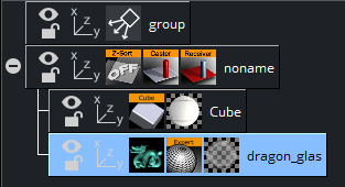 The following shows an incorrect rendering of a transparent object on a cube. The Z-ordering is wrong, therefore the transparent parts on the cube appears incorrectly (black). This might only happen when flying around it. When adding Z-Sort Priority to the parent container and reordering the tree, the cube is to be rendered first and the dragon afterwards, the transparency issues are fixed and the dragon appears correctly on the cube, even when rotating.