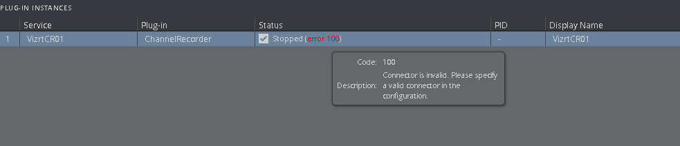 • 100: Connector is invalid. Please specify a valid connector in the configuration.