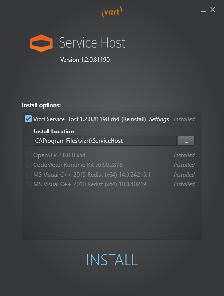 Service Host is installed at the indicated location. the default value is %ProgramFiles%/vizrt/ServiceHost.