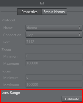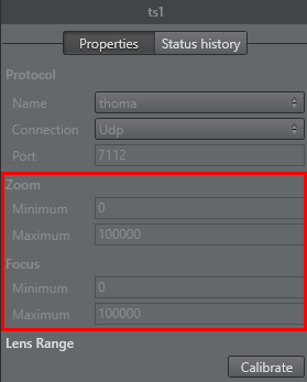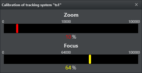 - First, collect the minimum and maximum Values of Zoom and Focus: - In the Tracking System properties panel, click the Calibration button: