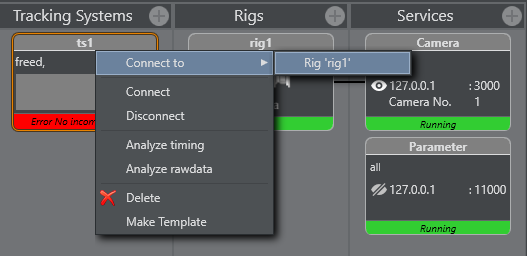 - Right-click on the Tracking Systems box and select Connect (connect to the tracking system).