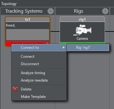 - Right-click the Tracking System and select Connect to > Rig (Lattice).