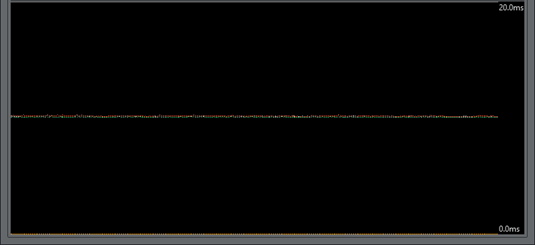To get the optimal timing, the Start Calc time must be later than the End Ins time, for every field. To achieve this, the send delay has to be adjusted correctly. The white line shows the delay. This line should be the absolute border between End Ins (purple line) and Start Calc (green line). To change the delay, use drag and drop to move the white line. If the delay can not be adjusted correctly, this can be for several reasons, for example, tracking data is received too late.