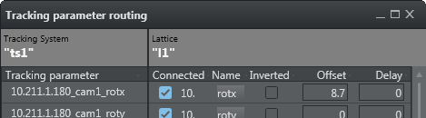 - The Tracking parameter routing window opens. - The Tracking System panel shows all the parameters that can be tracked.