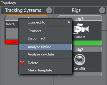 - Right-click on the Tracking System that is to be analyzed and select Analyze Timing.