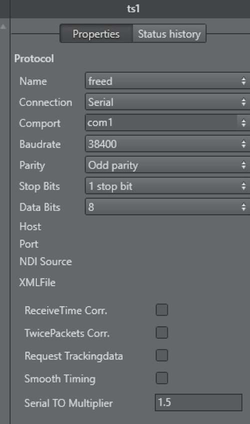 - Serial TO Multiplier: Determines the timeout when Tracking Hub reports missing tracking data is defined by the frequency of the studio sync (for example, for PAL the timeout is 20 milliseconds). When the packets are coming irregularly, Tracking Hub would continuously show an orange status. This timeout multiplier can improve the result by increasing this timeout interval.