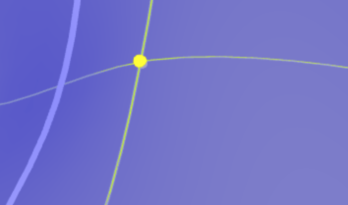 | A point that is not mandatory and untouched (blue), and a touched point (yellow). | A selected point. |