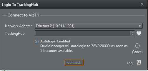 - The dialog remembers the last Adapter which was selected. If auto logon is enabled, the Studio Manager connects to the last selected Tracking Hub.