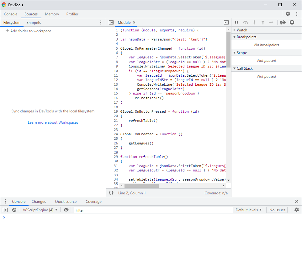 In the Chrome browser, you should now see the Viz Arc script available for debugging.