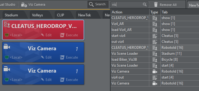 When executed, all actions send the relevant commands to Viz Engine to manipulate the scenes. These commands are sent to the Engines defined in the selected channel for each action.
