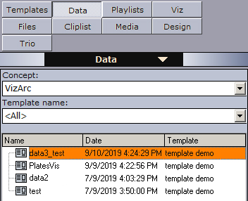 5. Now, switch to Viz Director and you should see your new data in the Data section. If you can’t see it, right-click on the data list and press Refresh.