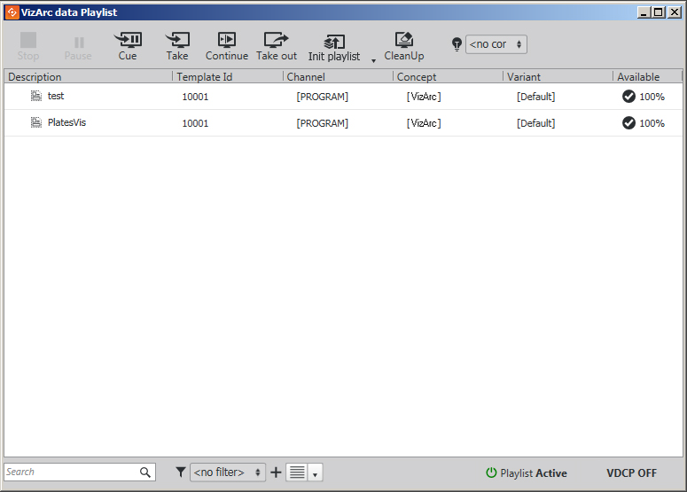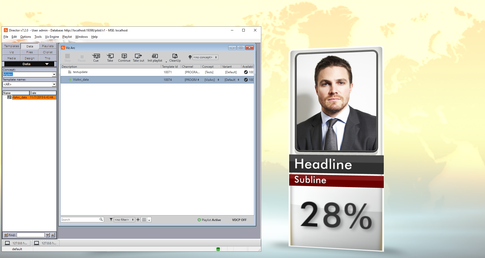6. Once this data is saved, you can operate Director like normal; for example, you can create a playlist and import all Viz Arc data.