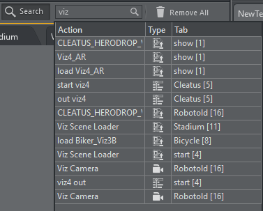 Actions View contains all the actions that are part of your Viz Arc project.