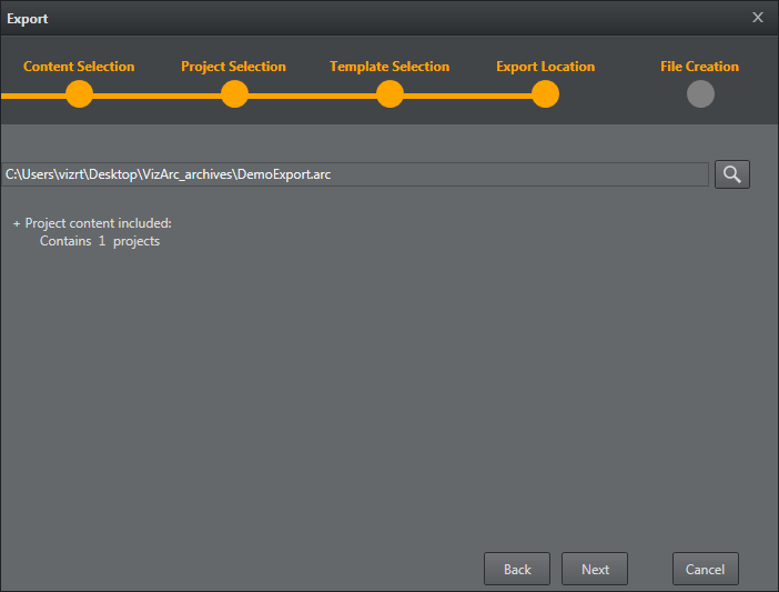 Select the file destination by clicking the search icon. A dialog appears. Click Next.