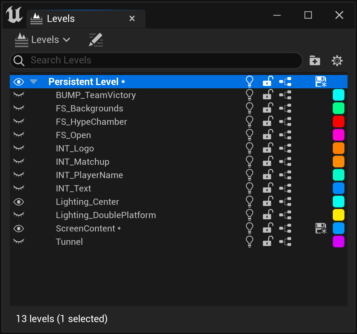 The Streaming Levels show a list of the streaming levels that are shown when the scene loader executes.