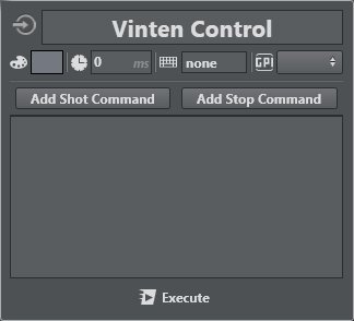 Select Create Vinten Control Action from the context menu to make the panel on the left appear. The shot list is empty. | |