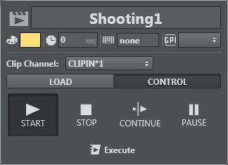 Use the CONTROL menu to START, STOP, CONTINUE and PAUSE the clip. |