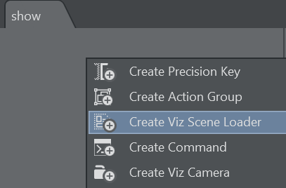 As an alternative, an empty scene loader can be created from the context menu on the action canvas: