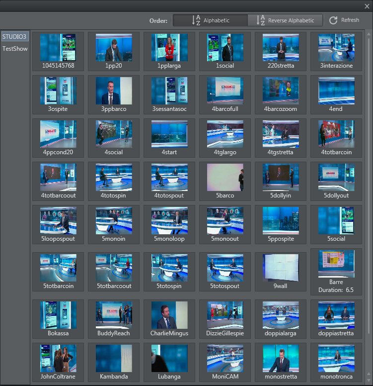 To add a Vinten shot, press the Add Shot Command button . A window containing all of the shots saved in the Vinten software (Vinten Automation Services) is displayed. | |