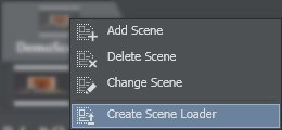 Create Scene Loader by right-clicking on the desired scene in the panel on the left: