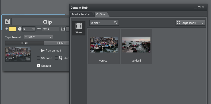 If a Viz One server has been configured, the Clip Action can also browse for clips on Viz One.