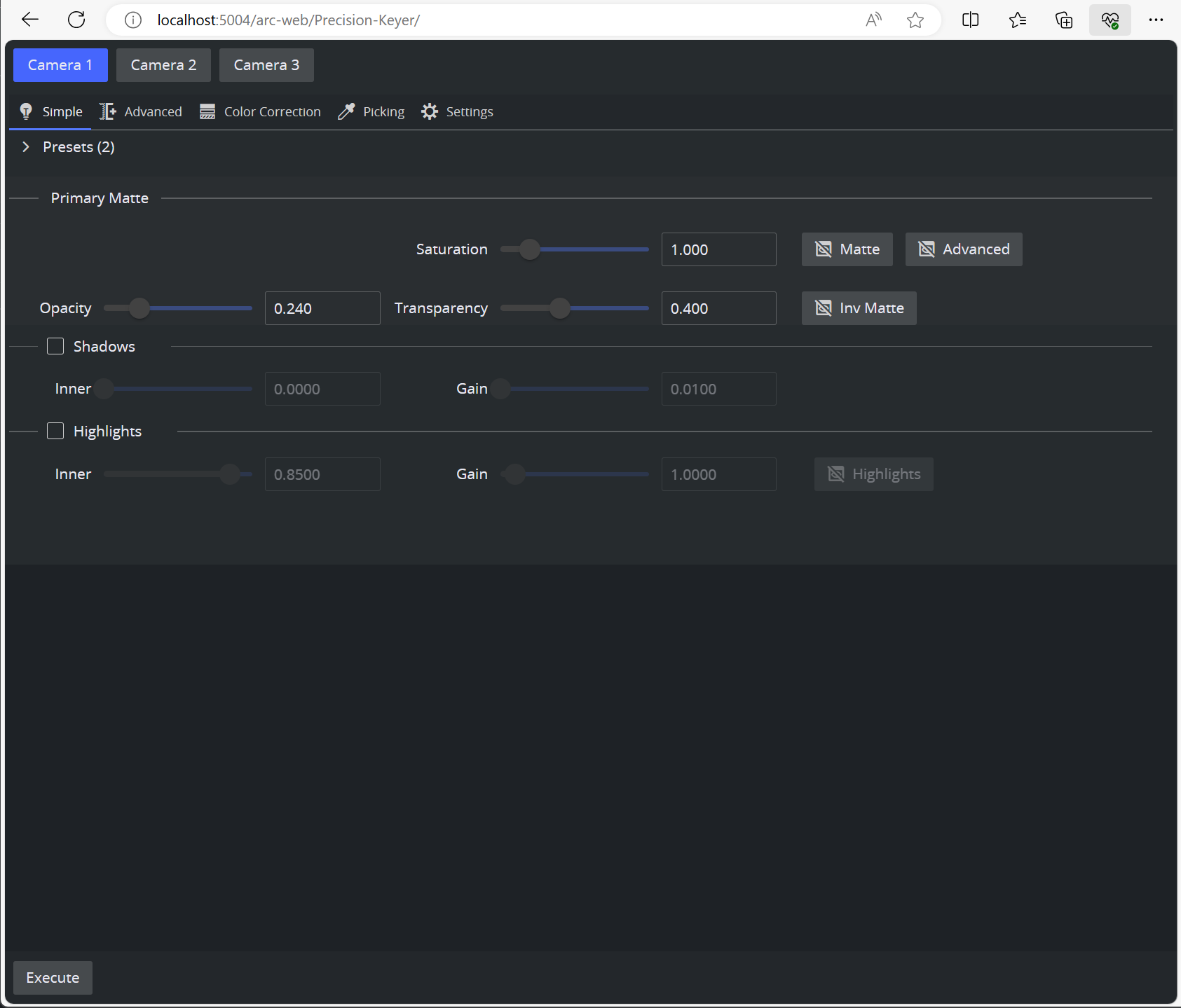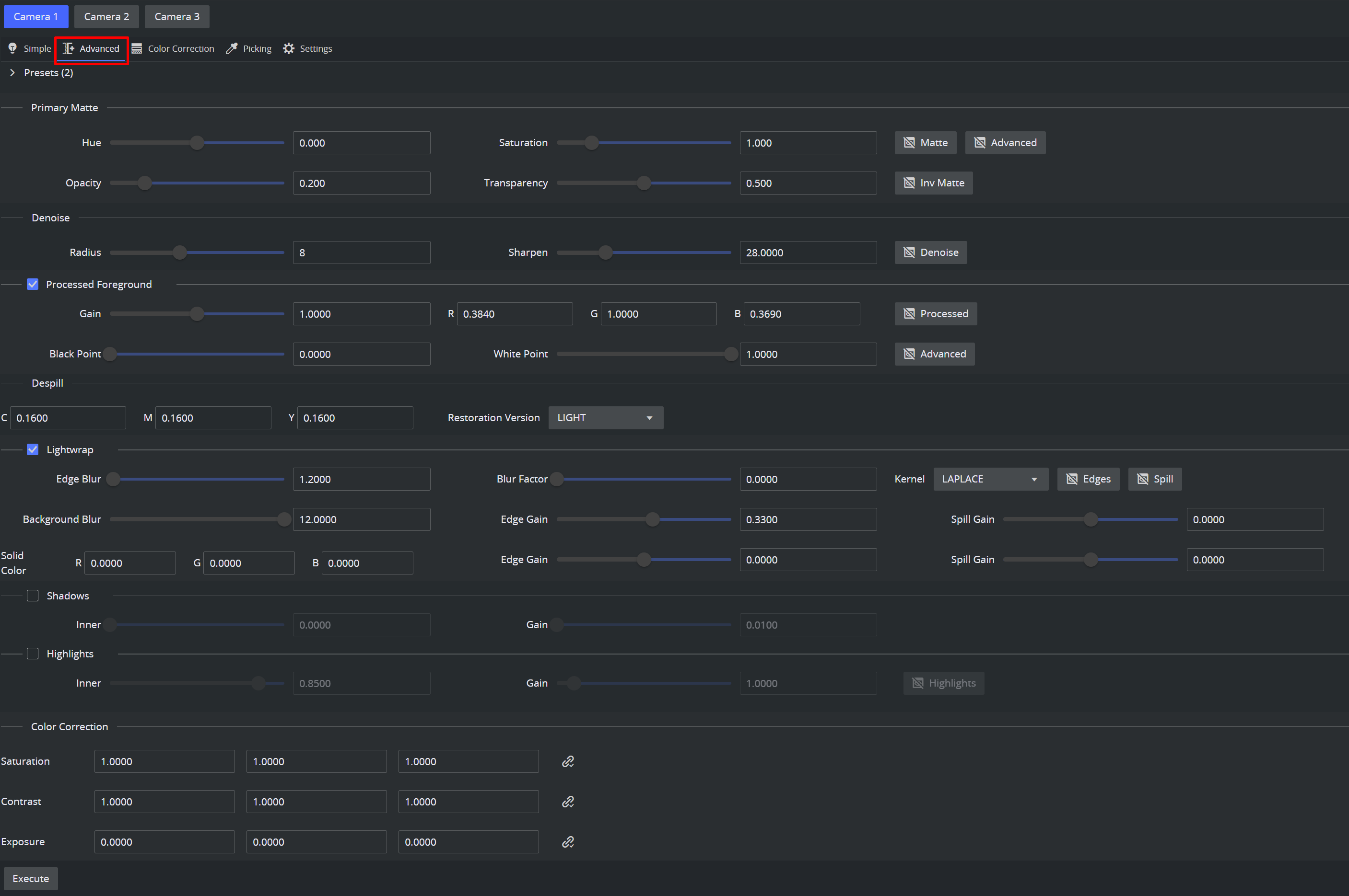 The entire chroma actions can be explicitly executed using the Execute button on the bottom left part of the view.