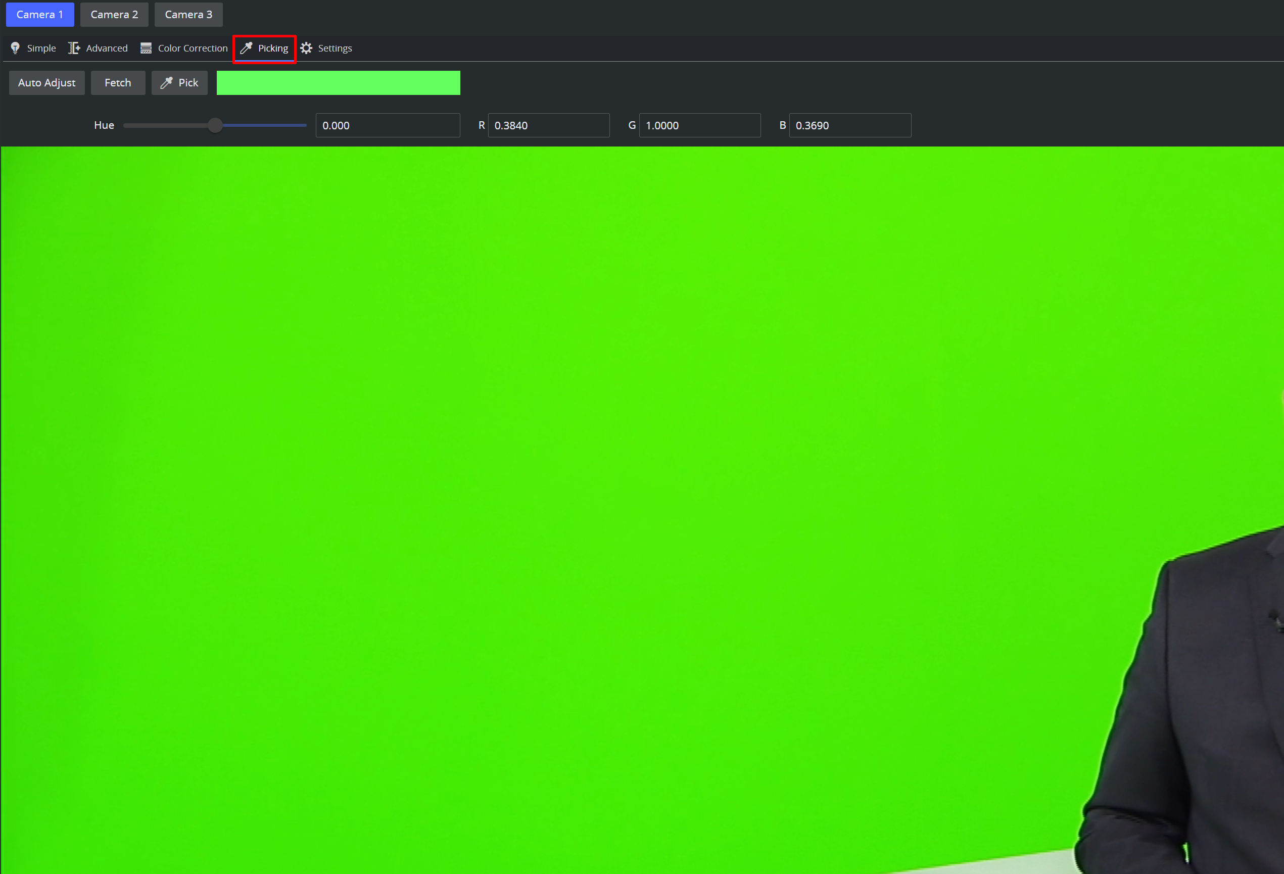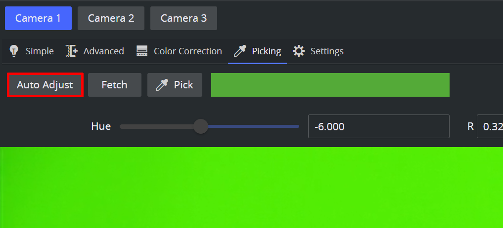 Use the Auto Adjust button to let the Viz Engine automatically determine an optimal backing color and hue.