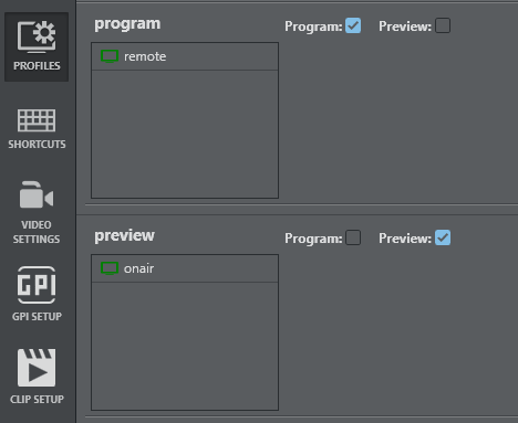 A sample profile configuration defining a program and preview channel