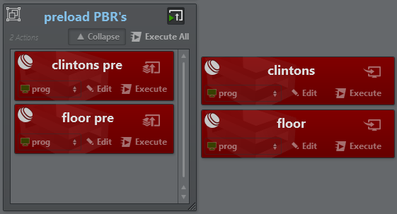 The screenshot above shows two PBR actions in an initialization group as pre-loading and the same actions on the right for loading.