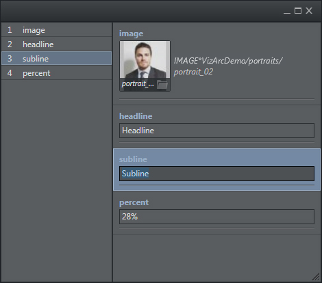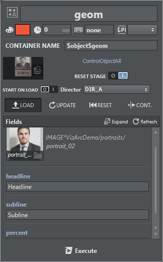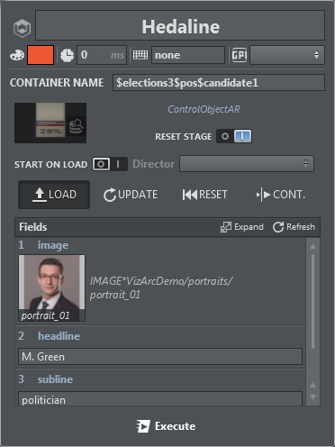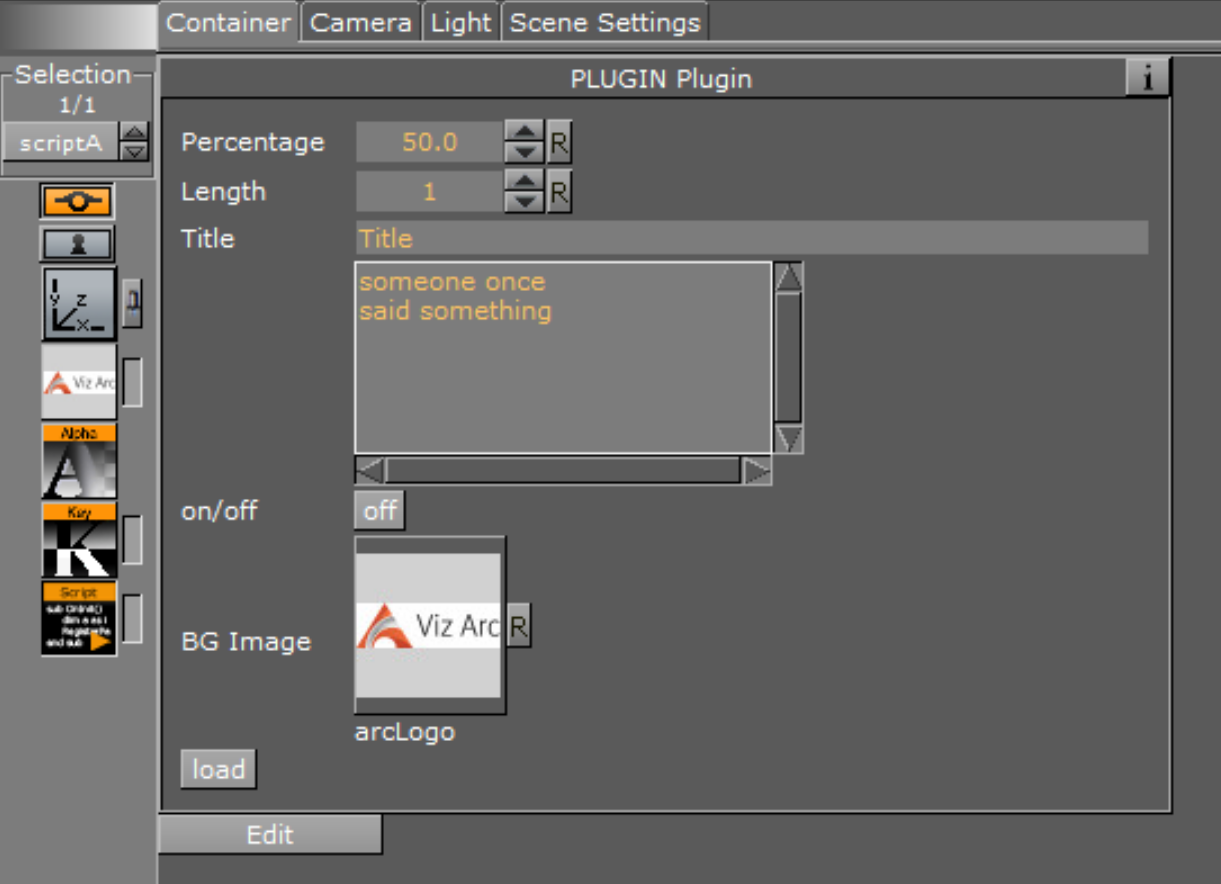 An example of a container script UI in Viz Artist.