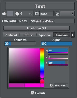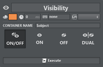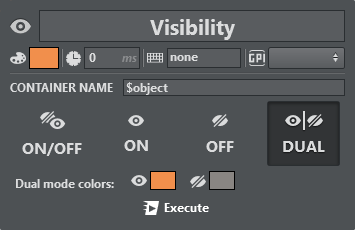 When DUAL mode is selected, left clicking Execute switches the container on and right clicking switches the container off. In the Dual mode colors section, two distinct colors can be defined for on and off states in order to make the state of the container more visible.