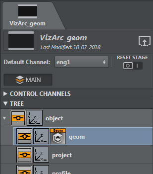 It’s also possible to select a SCENE instead of GEOM. Once the scene is loaded in the geom plugin, a separate edit section appears where it's possible to handle control object (if applicable) of the selected scene. |