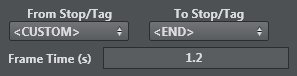 This menu lets you set the From stop/Tag and To Stop/Tag for playout of an animation for the FROM TO option. |