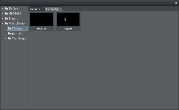 In Viz Arc, it's possible to import objectified scenes (GEOM) into another scene through the GEOMETRY element. Once the selected object is imported in the right GEOM, it's possible to load, update, refresh and continue. A step-by-step example of importing and playing an objectified scene follows below: