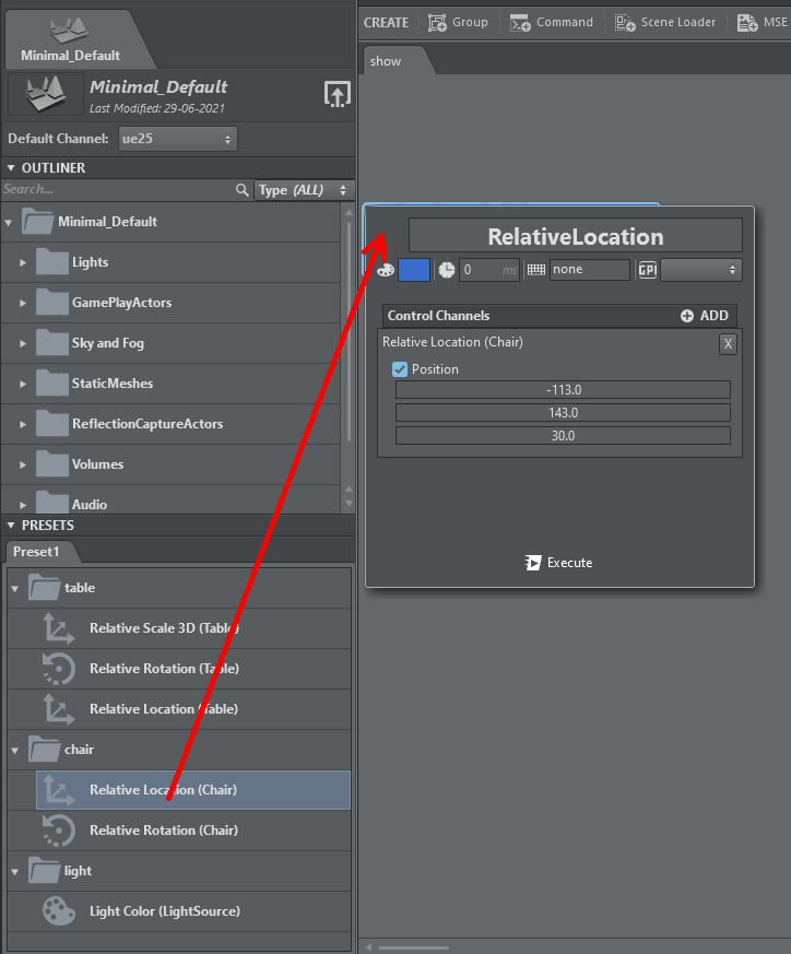 Any changes made in the view is sent to all Unreal Engines in the selected channel that have an active web interface. It is very important that both scenes have the same preset with the same properties.